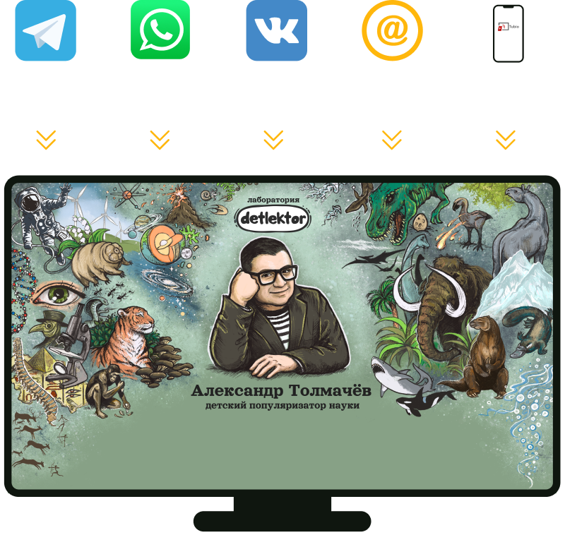 В списке чатов на телевизоре найдите контакт «Детский лекторий А. Толмачёва» , кликните на него, кликните на присланную в Шаге 1 ссылку и наслаждайтесь просмотром лекций Александра Толмачёва на телевизоре.